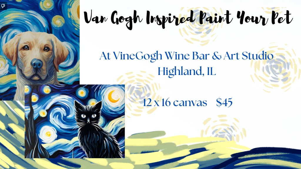 Join us for an exclusive painting class where you’ll transform a photo of your beloved pet into a Van Gogh